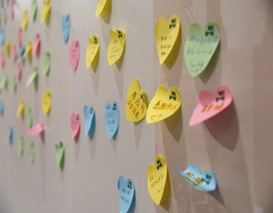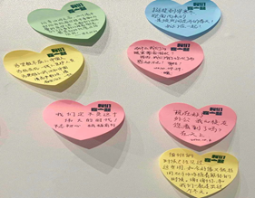 “我们在一起——武汉大学抗击新冠肺炎疫情特展”正在我馆持续展出中,二楼展厅中的一面留言墙上,时常贴满了色彩斑斓的便利贴,成为了观众传达所思所想的互动与展示平台。